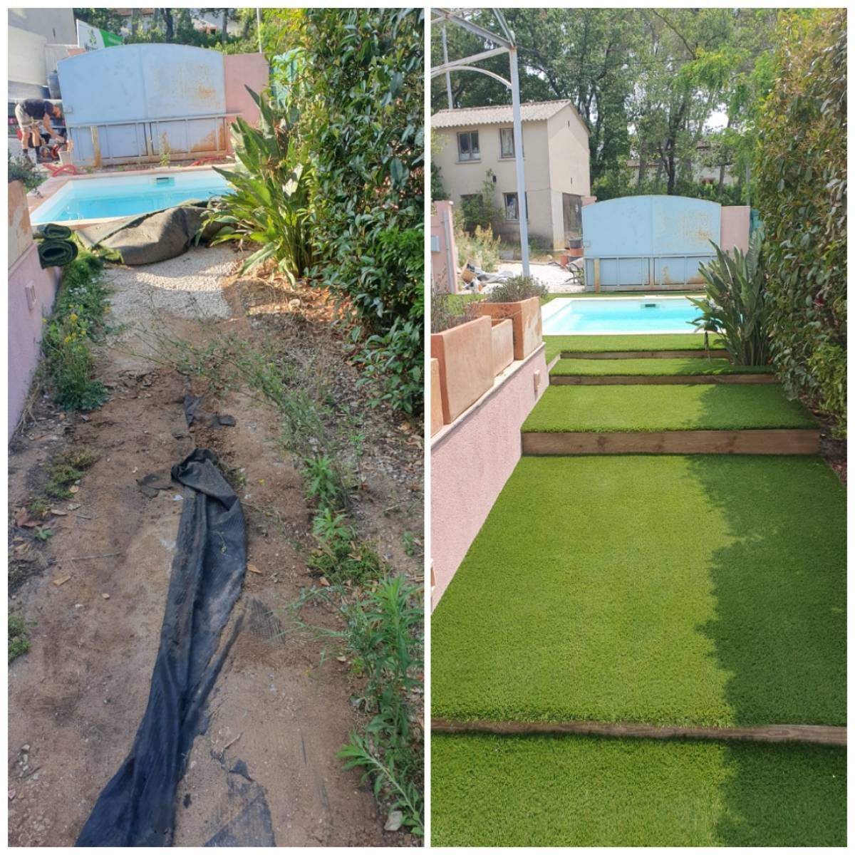Votre terrain est en pente ? Vous recherchez un expert paysagiste pour son aménagement ? Notre entreprise Les Jardins de Laurent vient d’effectuer un aménagement paysager avec gazon synthétique dans un jardin de 215 m2 à Hyères avec une zone en pente.