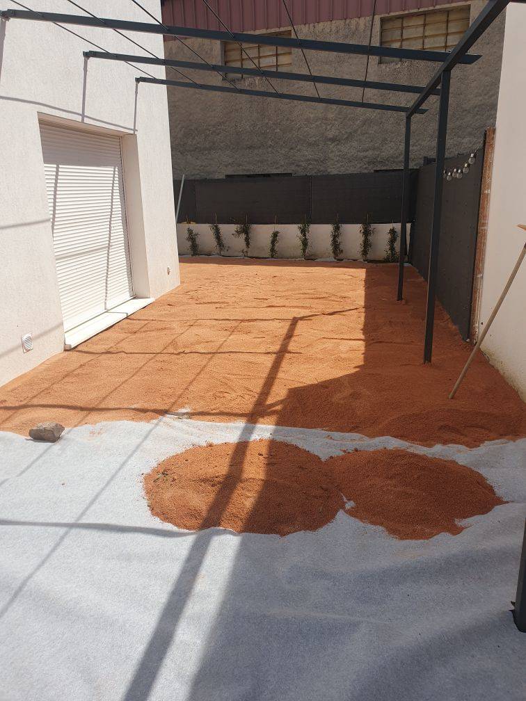 - nous avons fourni et posé 180m2 de faux gazon de haute qualité,