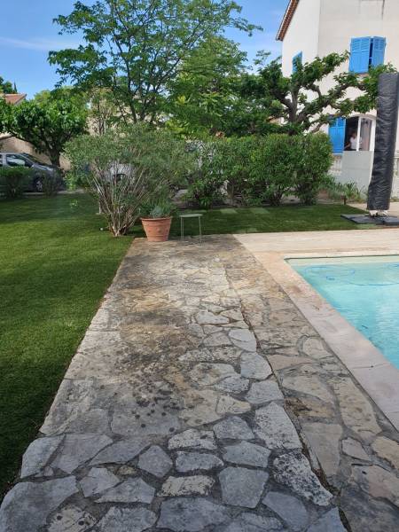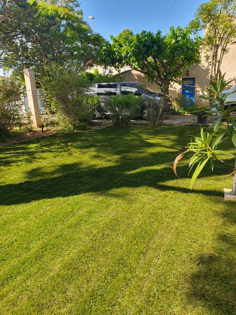 Découvrez une nouvelle création réalisée par Les Jardins de Laurent avec l’aménagement d’un espace en gazon naturel pour terrain sec posé par son équipe de jardiniers experts à La Crau (83).