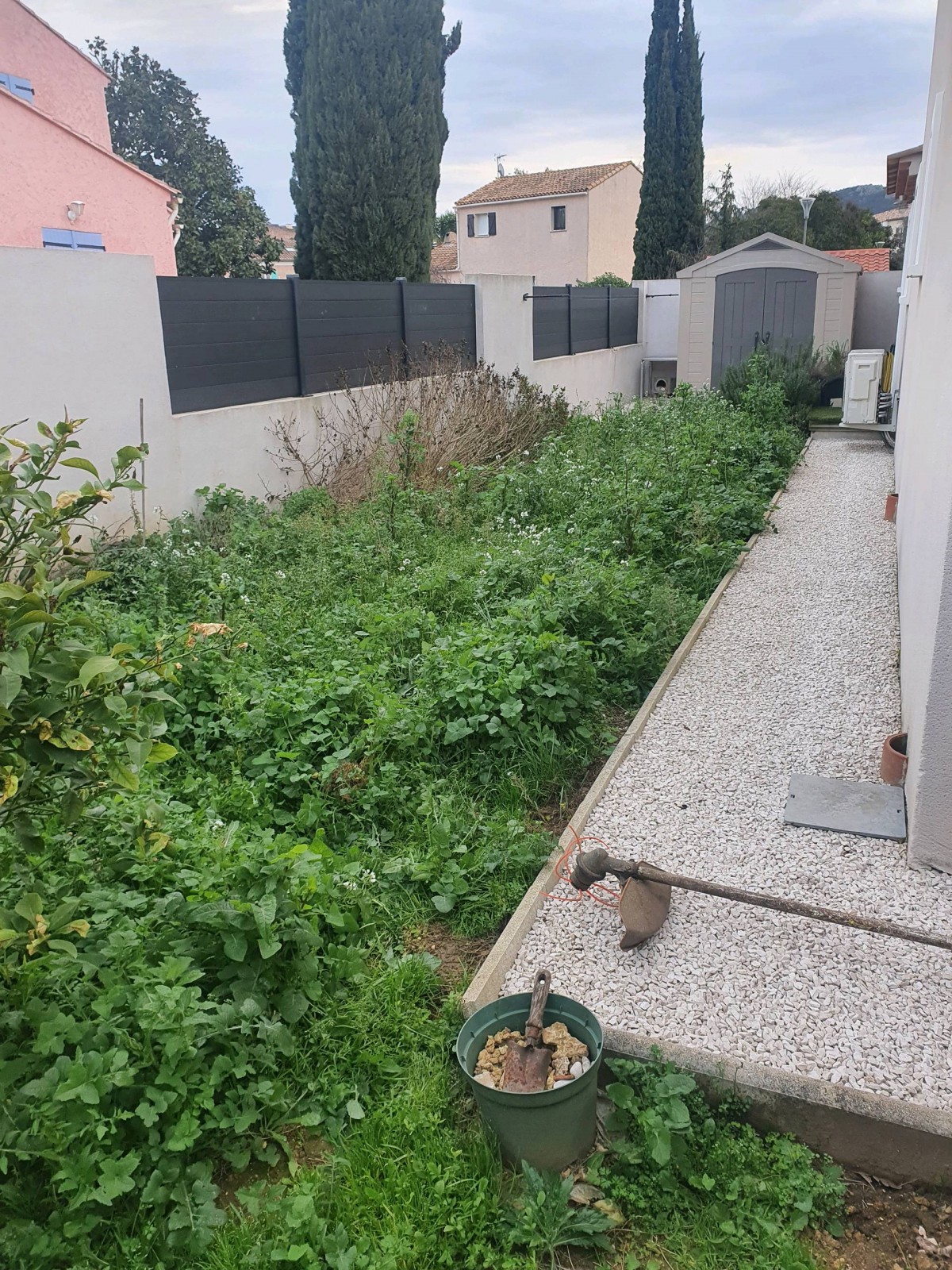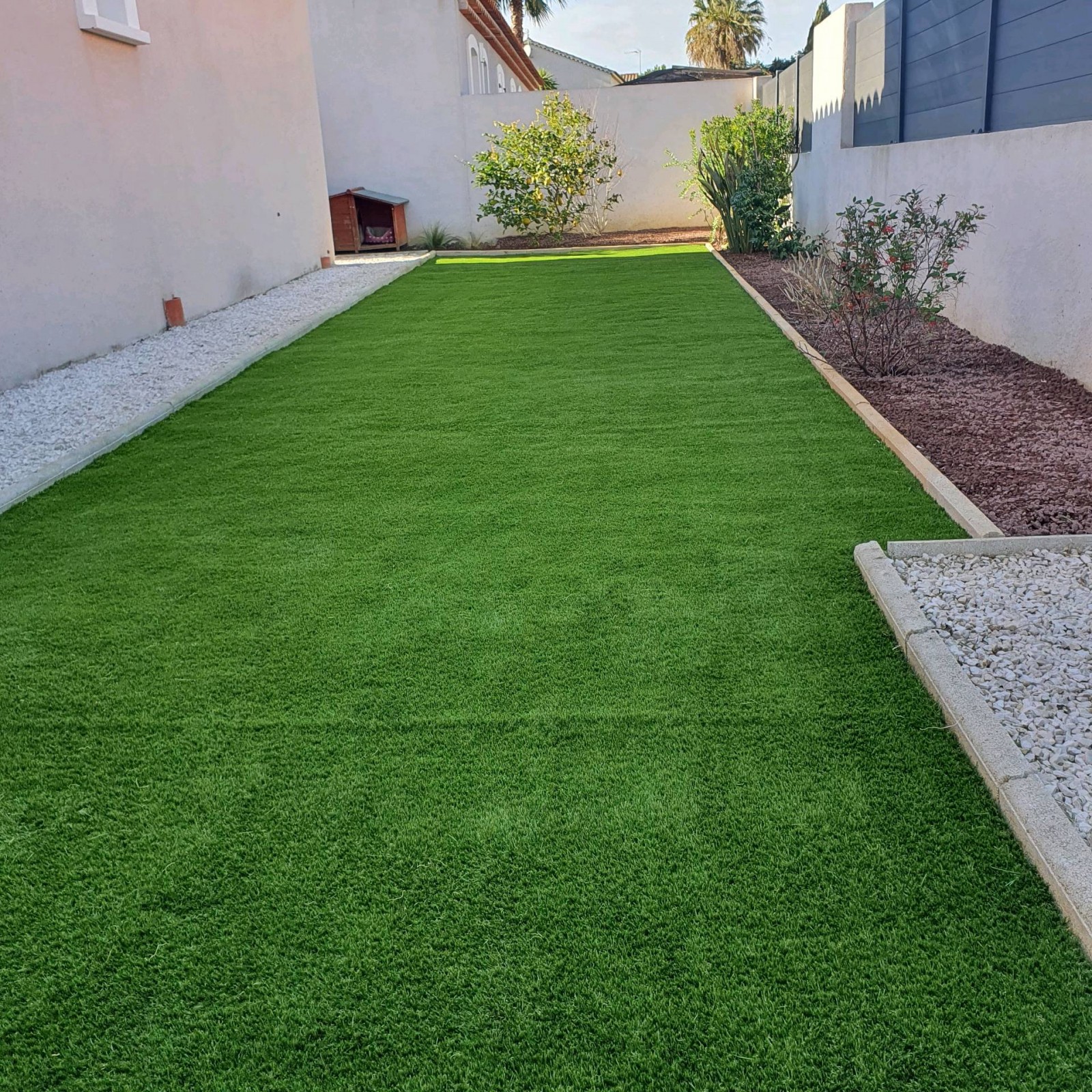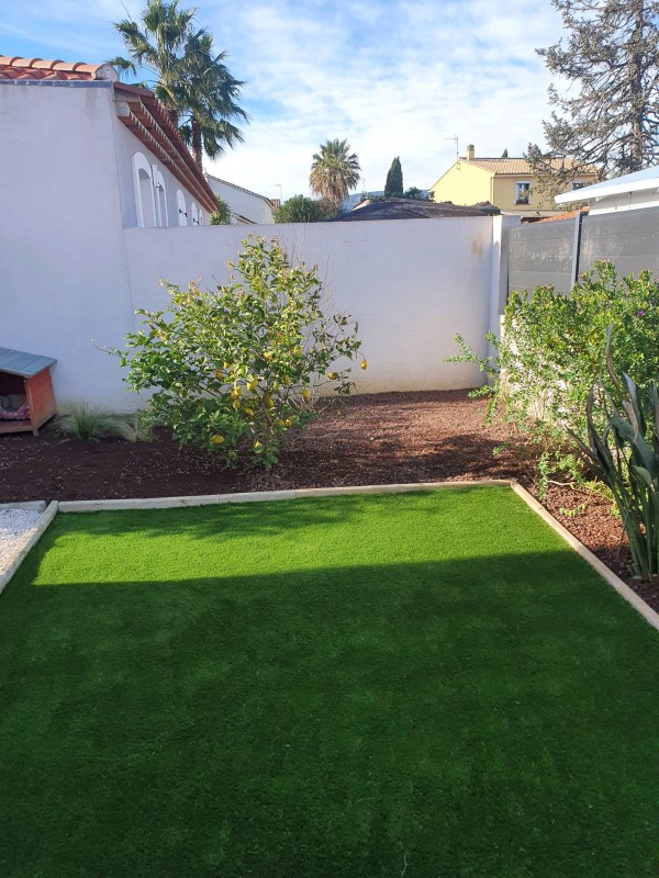 Les clients propriétaire de leur maison située à la Crau dans le département du Var nous ont contacter car il avait un terrain de 45 m2 en friche et ils désiraient la pose d'un gazon synthétique pour un minimum d'entretien.