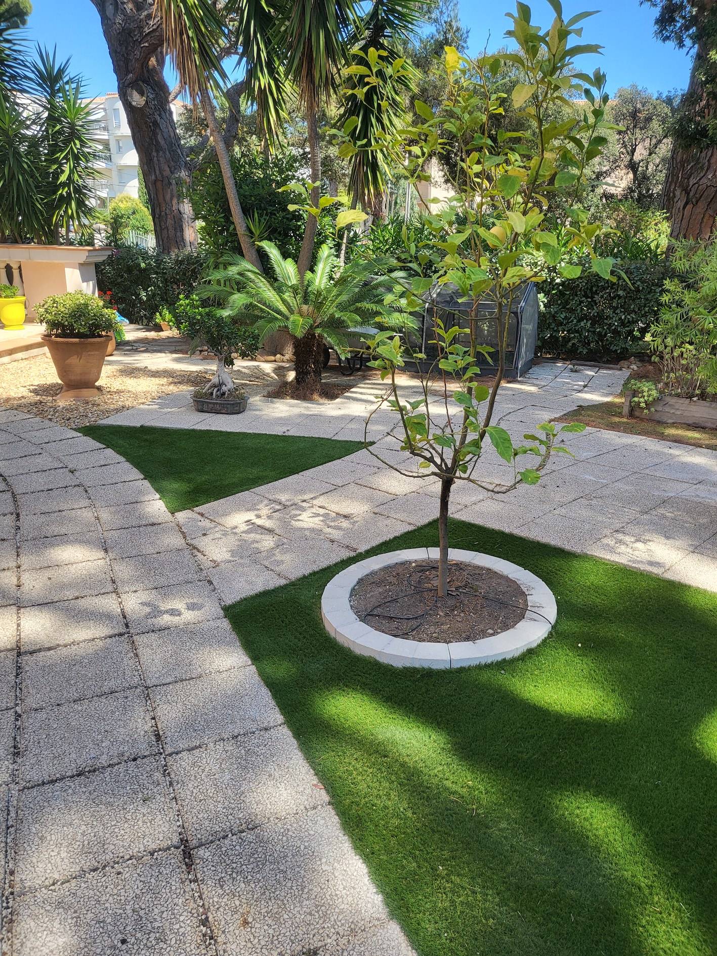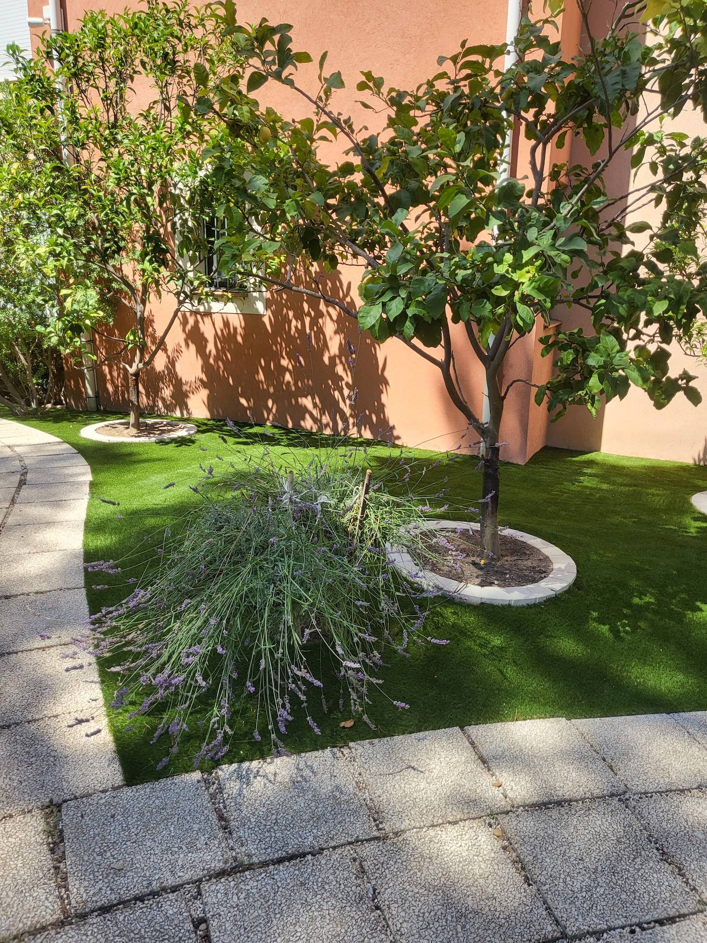 Les Jardins de Laurent vous invite à découvrir une nouvelle installation de gazon artificiel dans un petit jardin à Hyères 83.