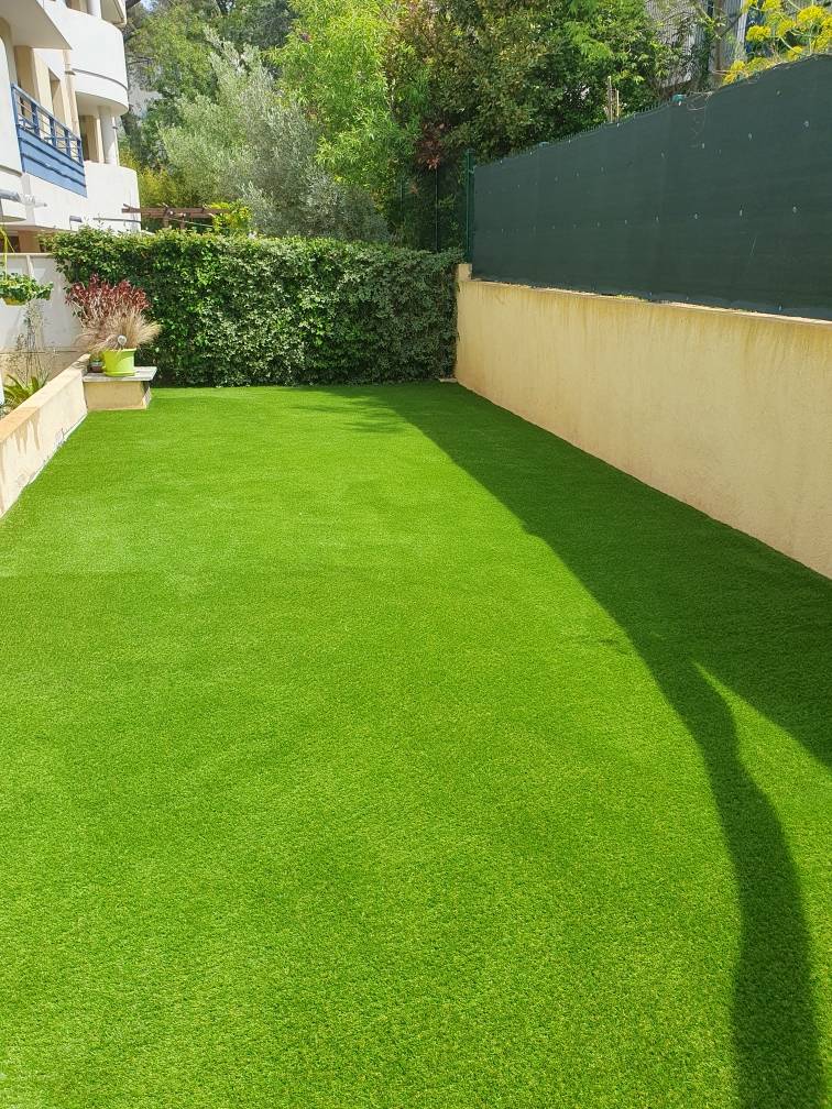 Les Jardins de Laurent et son équipe viennent de réaliser une installation de pelouse synthétique sur une surface de 58 m2 chez un particulier à La Garde (83).