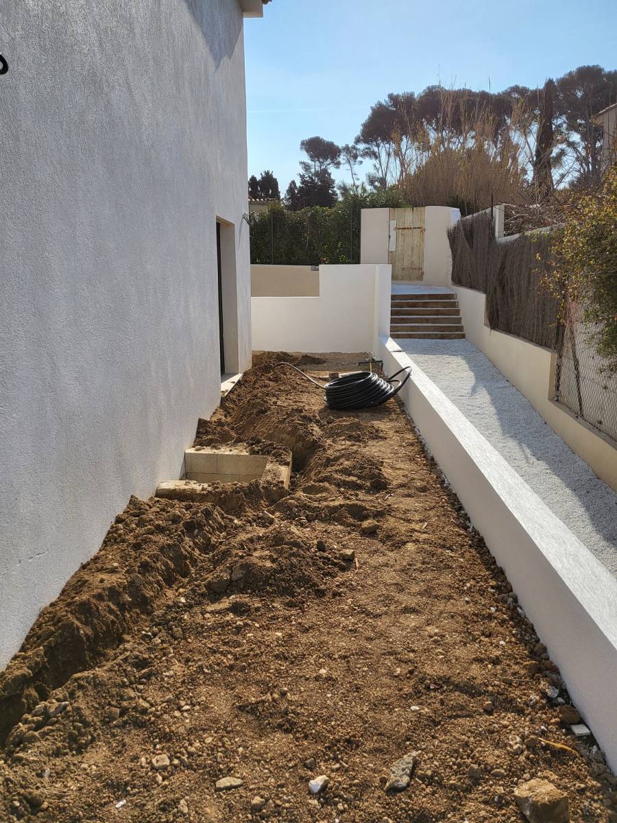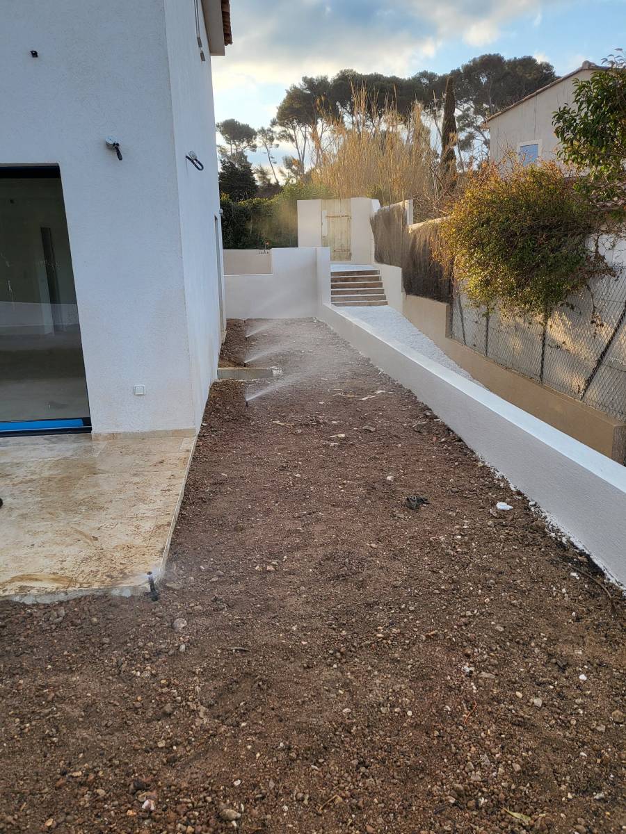 Notre entreprise de jardiniers est intervenue dans le cadre d’une prochaine livraison de maisons neuves avec jardin sur la commune de Sanary sur Mer. Un système d’arrosage automatique a été commandé par les nouveaux propriétaires.