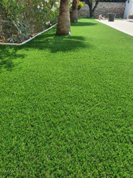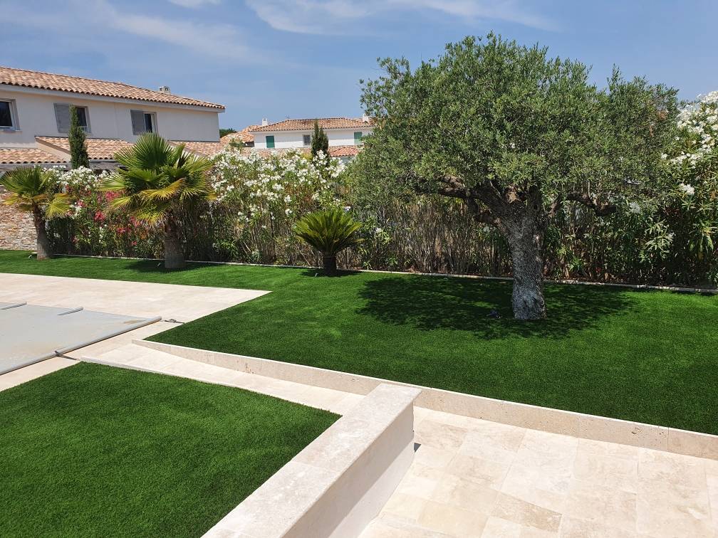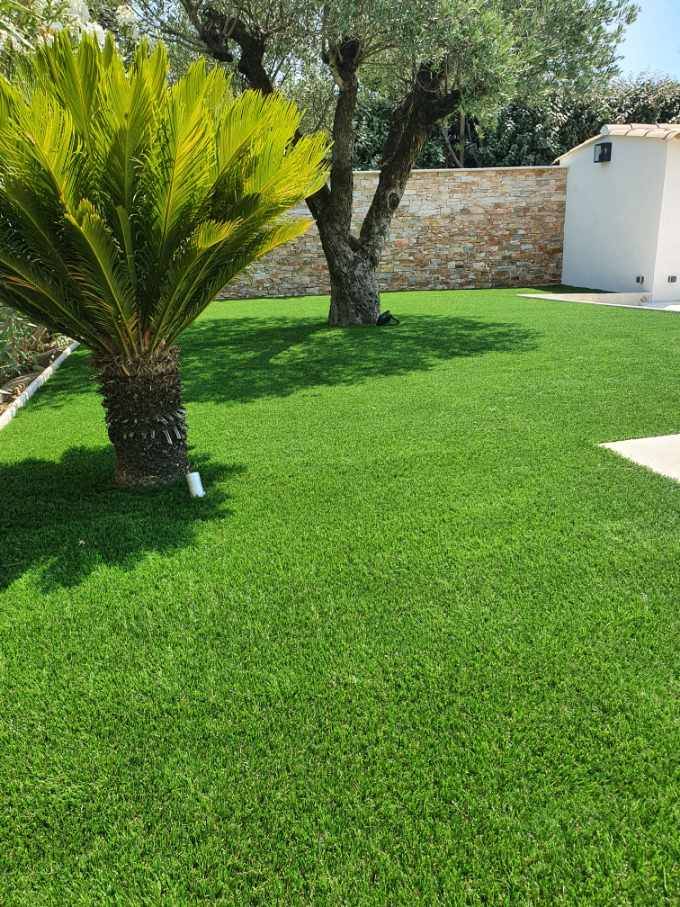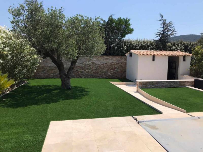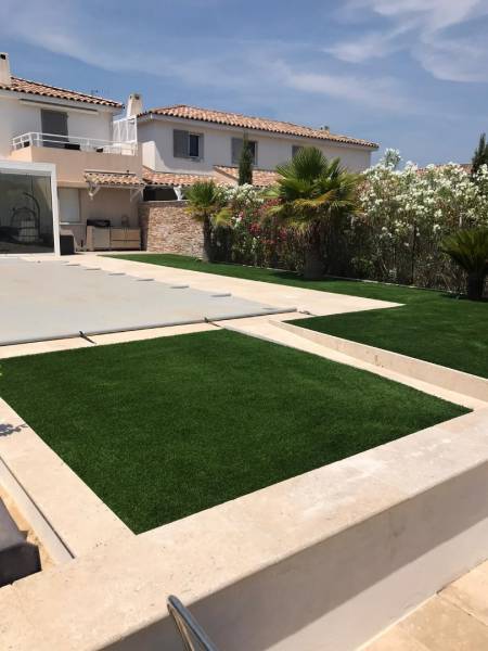 Pose d'un gazon synthétique à Cogolin dans le département du Var