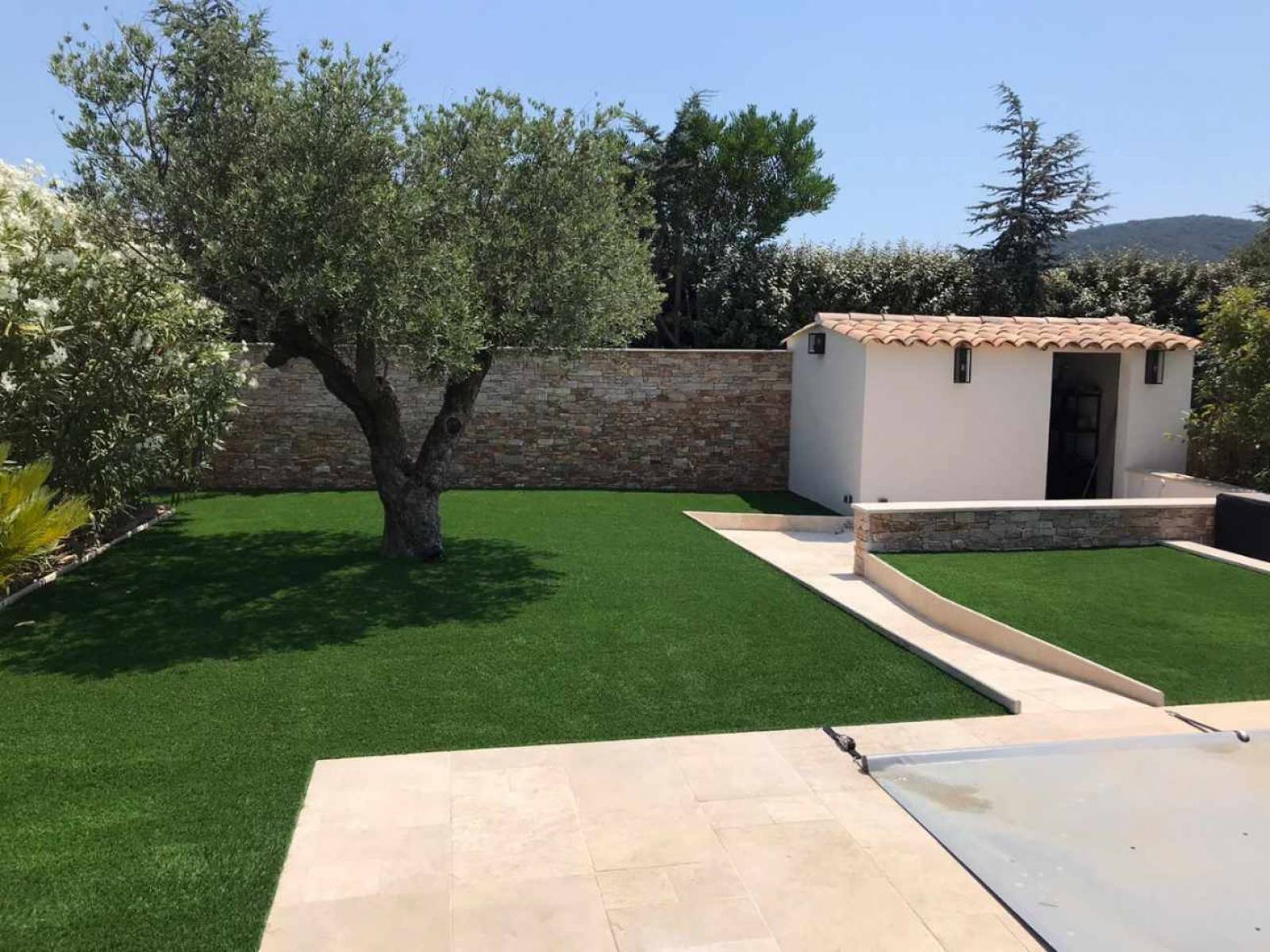 Et ils souhaitaient la pose d'un gazon synthétique pour un minimum d'entretien.