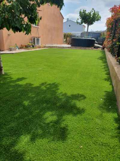 Pose d'un gazon synthétique à la Crau dans le département du Var