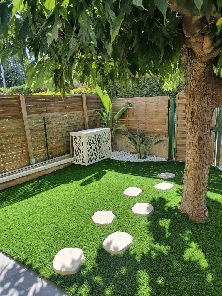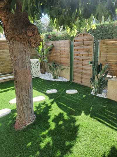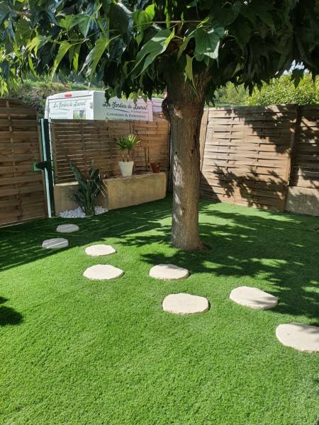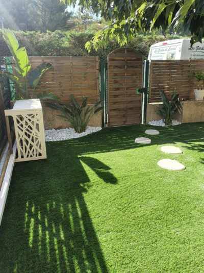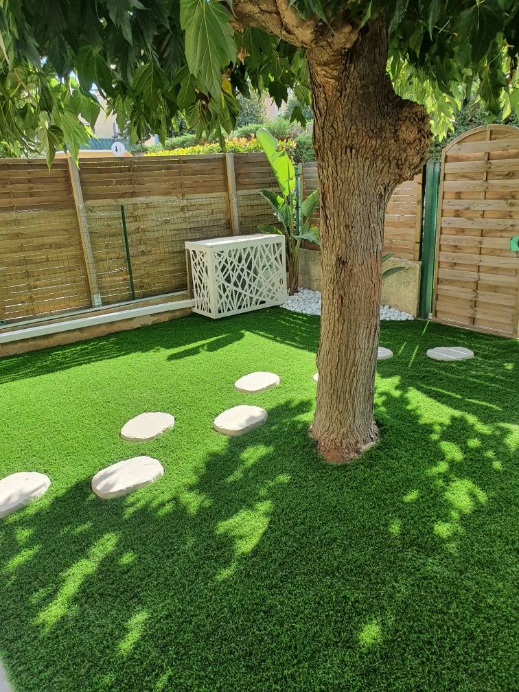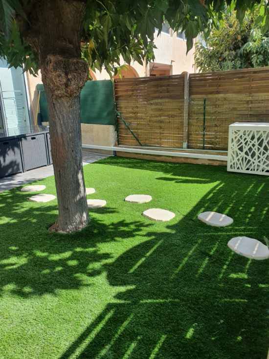 Et elle souhaitait la pose d'un gazon synthétique pour un minimum d'entretien.