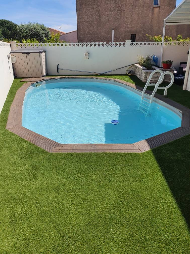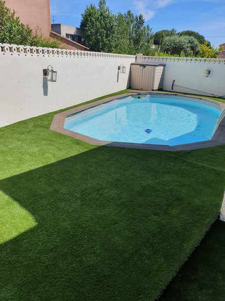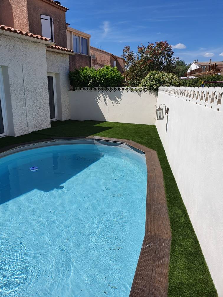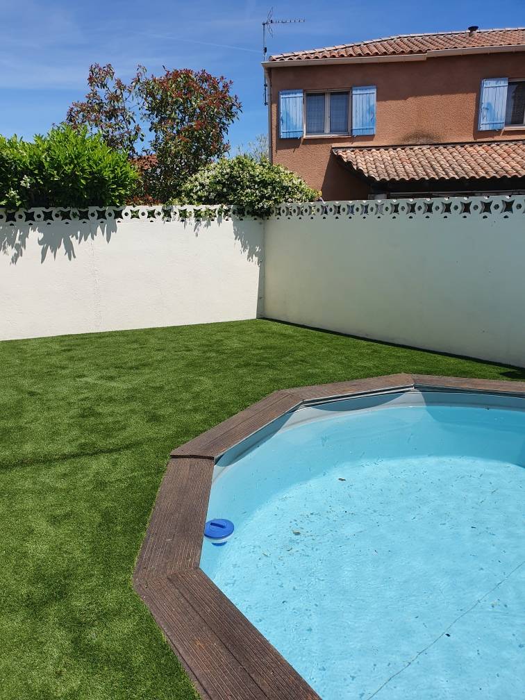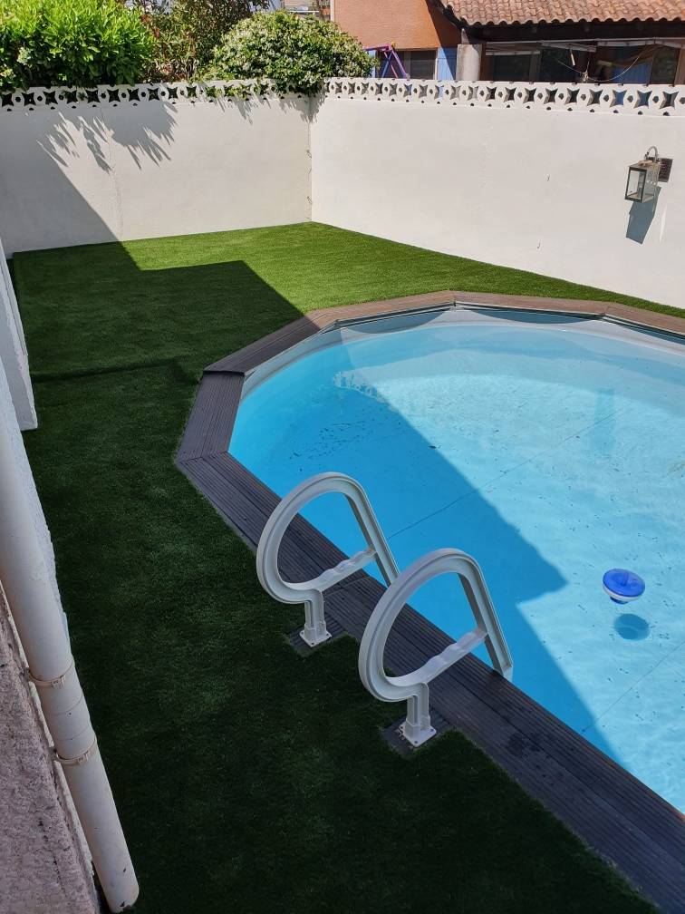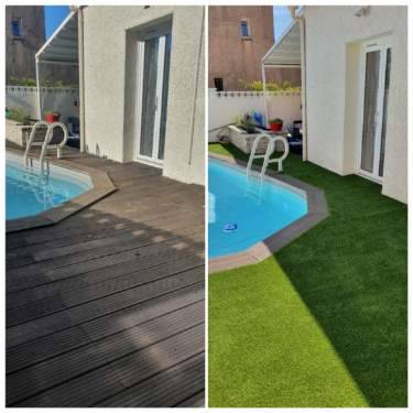 Pose d'un gazon synthétique sur terrasse en bois à la Londe les Maures