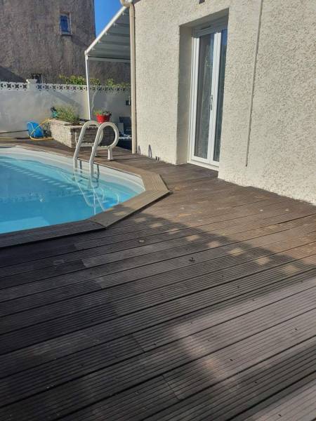 Les clients propriétaires d'une maison à La Londe les Maures dans le département du Var, nous ont contacté pour un projet de pose de gazon synthétique à poséesur leur vieille terrasse en bois.