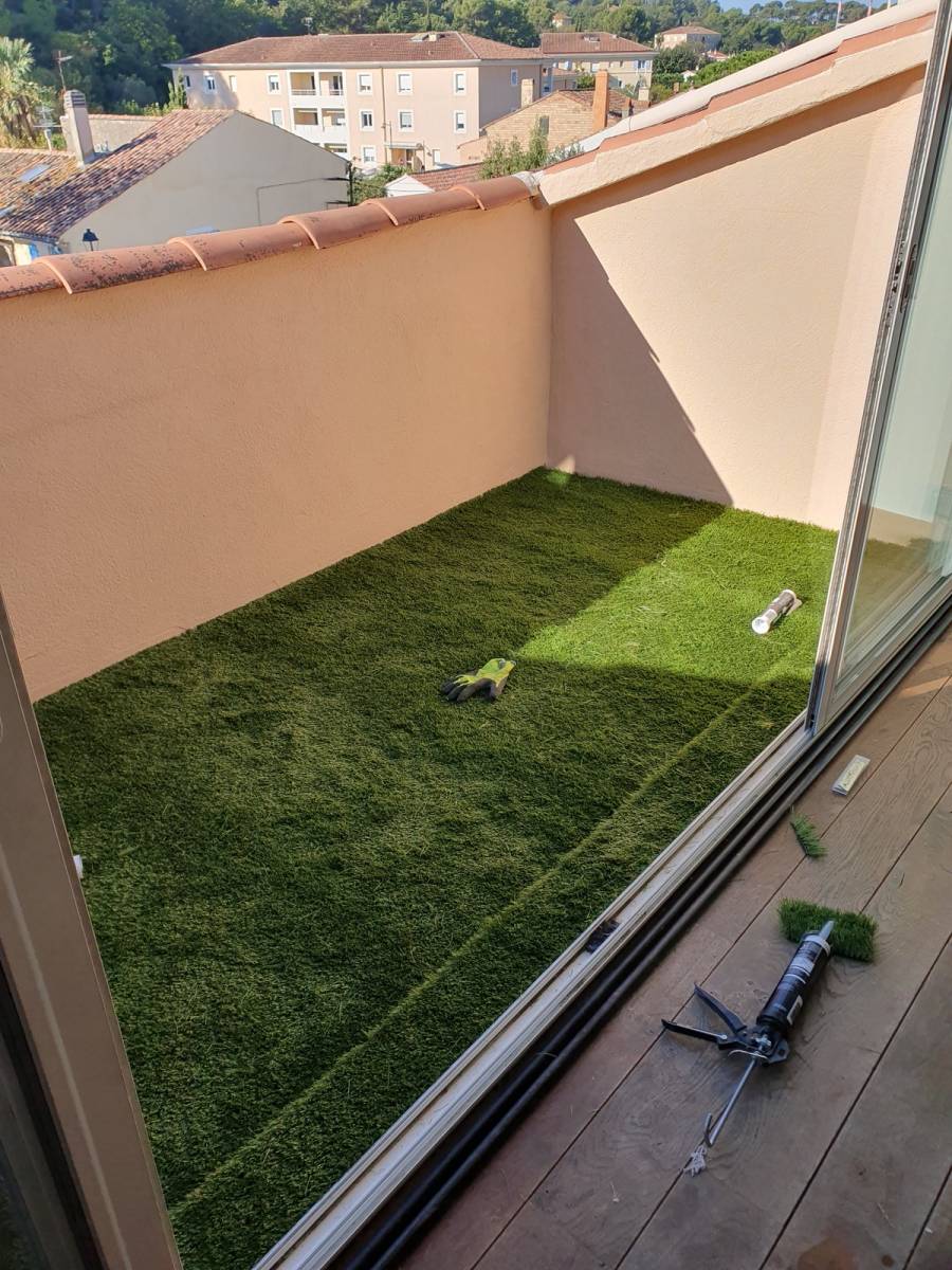 Vous souhaitez transformer votre terrasse et en faire un écrin de verdure au look exotique ? Inspirez-vous de cette pose de gazon synthétique effectuée sur les 2 terrasses de notre client au Pradet près de Hyères.
