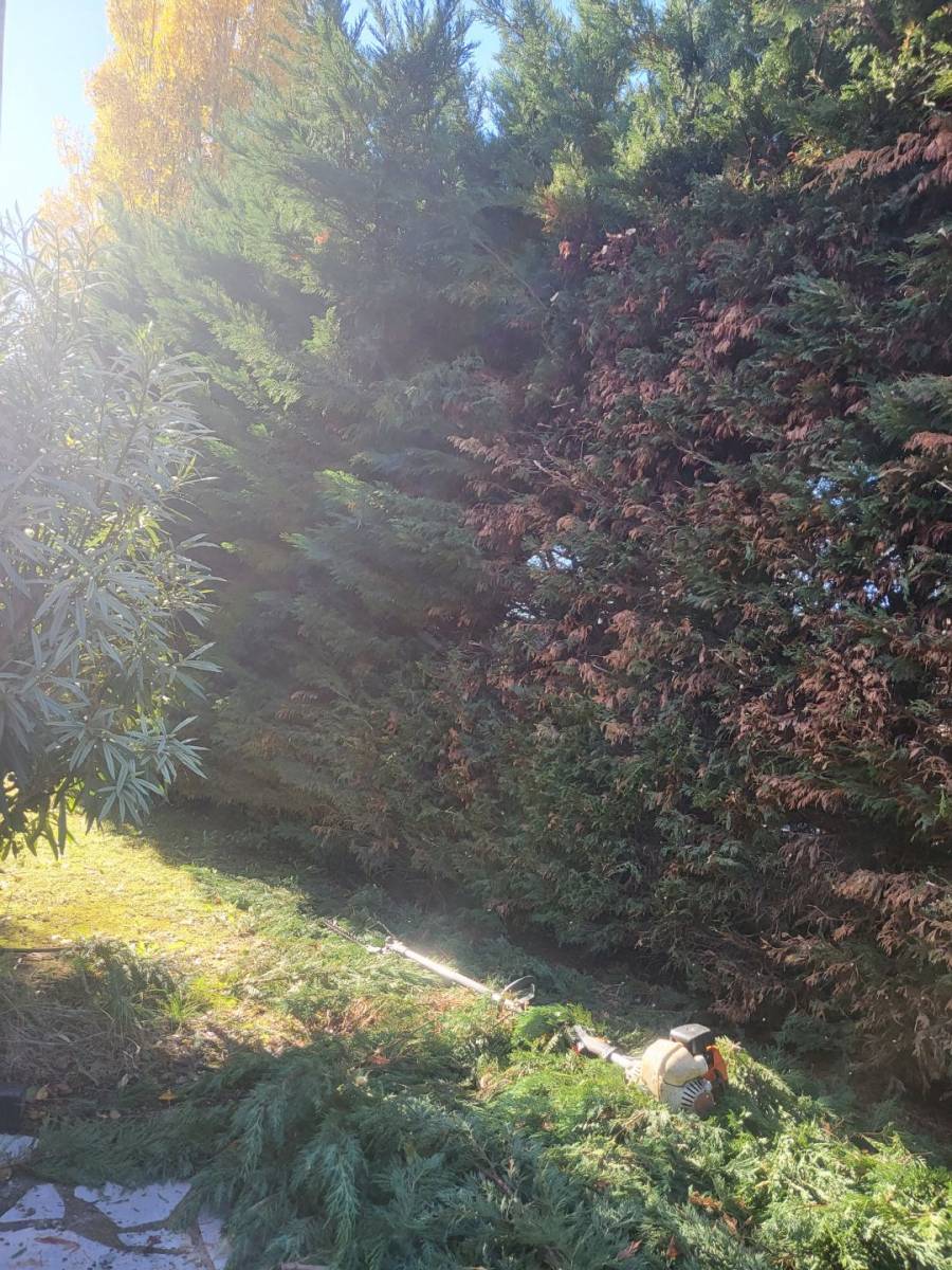 Pour le compte des propriétaires d’une villa avec jardin sur la commune de La Crau, nos jardiniers professionnels ont effectué une taille de rabattage pour une haie de cyprès Leyland.