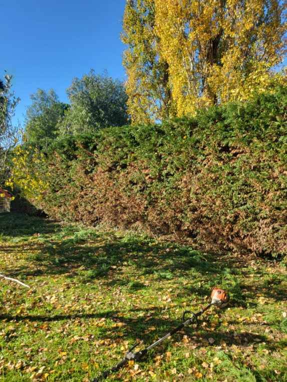 La hauteur de cette haie non taillée depuis quelques années a été réduite pour atteindre 2 mètres.